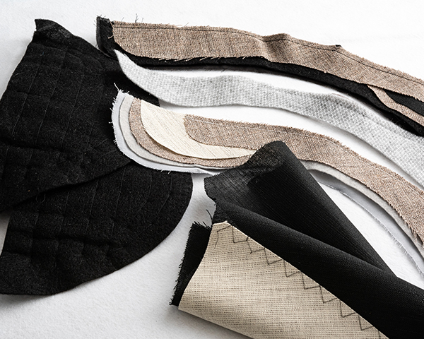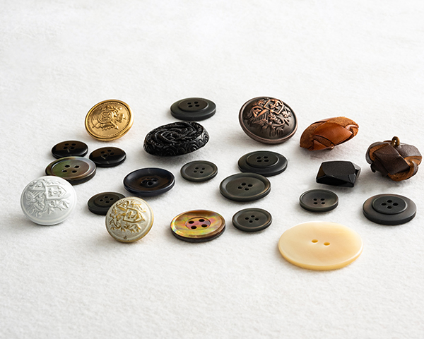 ボタン、YKKファスナー、裏地、芯地、肩パット、垂れ綿、マーベルト、